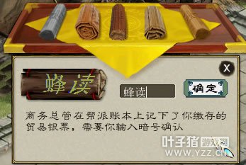 每次买卖交易都有几率触发画符的讲价玩法,画的越好讲价的幅度越大。 几经周折,跑遍三界,终于赚够了交票需要的40万银票,回帮派商务总管处交任务去! 完成文字识别小游戏,成功交任务,将银票存入了我的银票账户之中。 银票账户可用来在帮派商务总管处购置种类丰富的贵重物品,物美价廉,还能购买随机宝箱,赢得几率大神眷顾。银票购买物品的初始价格通常低于大话币购买价格,且价格会随购买数量波动,同一件物品购买的人多则价格上涨,购买的人少价格下降。