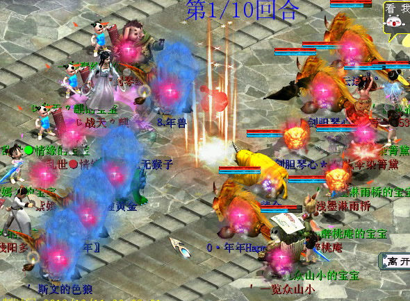 双方队伍都是按部就班出手,而乱世的大力女鬼选择隐身出飞花套装技能,这点是第一回合亮点。