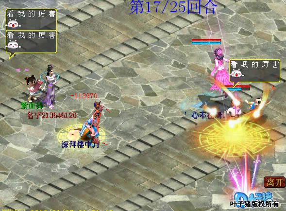 经过几回合的调整,紫血舞再一次发展了对手的破绽。