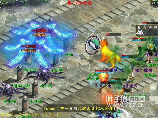 队伍里的女魔跟我都很喜欢虐NPC所以就想试试,五个号杀了5次,用时100分钟左右,挂了很多次。最终终于在大力给力之下8回合完美击杀了这个BOSS!