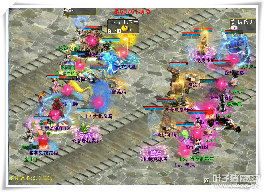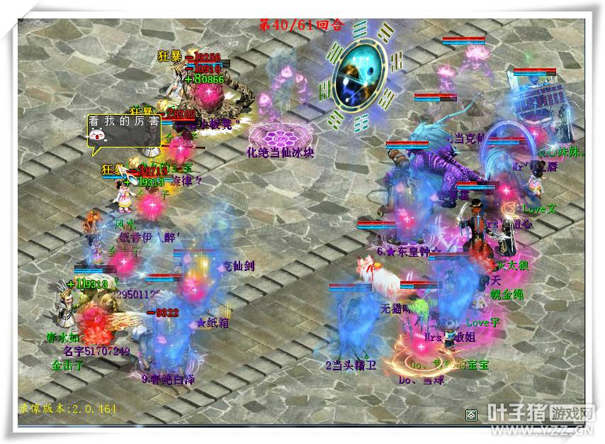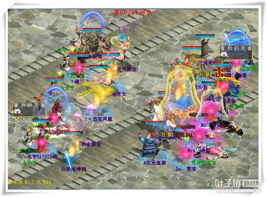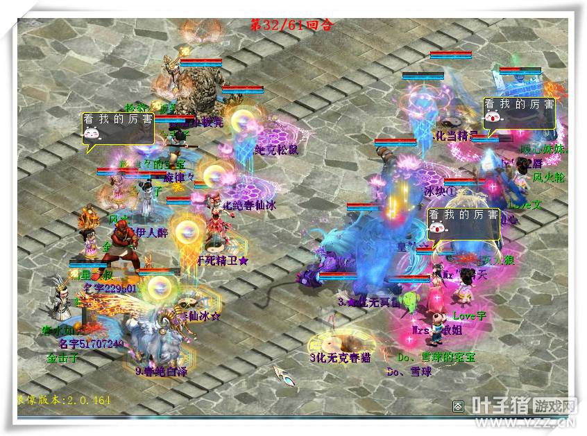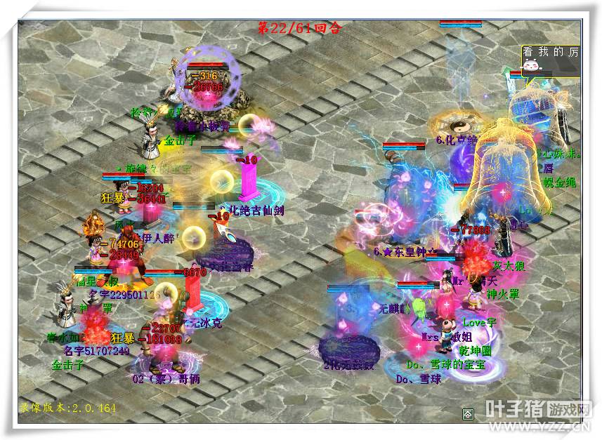 太初幻境--纸香伊人队: 1.拎着小板凳:回鬼 2.旋律:冰人 3.纸香伊人醉:敏盘魔 4.名字229501126:霄汉忘鬼 5.名字51707240:寒鸦炮 凌烟阁--敏姐队: 1.红唇:霄汉鬼 2.随心:回鬼 3.晴天:寒鸦炮 4.敏姐:敏盘魔 5.雪球:混冰人 (以上两服务器的代表队依旧是大家所熟悉的血队队形,本次比赛的看点就在于两位火力炮的大招,那恰到好处的 一言不合说吹走就吹走 比 赛 开 始: 进入到比赛的第一回合,映入眼帘的果然是两只黄鹤星阵的图像 名字22强有力的遗忘一直持续到第6回合,但这个遗忘似乎并没有影响到随心的大回,倒是压制了火力晴天的法术释放,第三回合仍旧没有解开遗忘状态,纸香伊人醉的灵宝触发四人合计,来了个大黑屏 在遗忘的控制下,主视角队伍晴天的火力只得用水法输出,第7回合遗忘状态解除,雪球的一个大混漂亮的混上起了盘的纸香伊人醉 第8回合,纸香伊人醉队伍天罡八卦触发,成功反射了晴天的火力伤害,使得敏姐队两人倒地,两人残血。 11回合,红唇的冰块舍生成功,顺利的控制了对面的男人,随后雪球的一个大混,混上了名字51,限制了对面的火力输出,纸香伊人醉金箍晴天失败, 就在你还沉迷于数灵宝剩几个的时候,令人尴尬的一幕发生了 几回合的调整之后,双方都开始强有力的互相伤害, 21回合,随心开启大招流风回雪,纸香伊人醉饮鸩止渴失败,随心为队友增加护持状态 比赛周旋到第31回合的时候,名字51叫出来了一头大白羊,为队伍开启泽披天下 35回合,一直被封印控制的晴天,在随心的精卫小春之后得以重见天日,愤怒式的一秒,简直亮瞎双眼 40回合的时候,敏姐队也触发了天罡八卦技能,反射了一个拎着小板凳的回血伤害,效果相比第8回合的反射,是有点九牛一毛了 果然锤子太硬...在第55回合的时候,纸香伊人队的金击子触发二人合计,终于敲掉了雪球支援出的乾元镜 58回合在名字22的大绝境果子辅助之下,队友相继叫出召唤兽,纸香伊人醉明心见性解除旋律的金箍状态,全队满血复活,可惜敏姐的一个饮鸩止渴限制住了名字51的火力输出,就在纸香伊人醉专心计划下回合如何操作的时候, 这一下就把纸香伊人队的队友们吹的不高兴了,还我队长来 回合结束,被吹走的纸香伊人醉重新归队,场上主视角敏姐队九个单位一个灵宝,纸香伊人队满屏状态, 本 场 赛 事 录 像 链 接:纸香伊人队VS敏姐队.wrec <<<点击进入大话西游2论坛讨论>>>