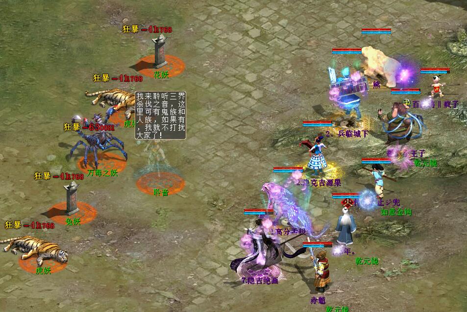 来自剑烛沧海服务器的“兜兜队伍”,拥有顶级的任务队硬件配置,杀法和经验也是一等一的强,队中拥有魔族攻略大神赤霄,更有队长“兜”的精准方向感,这支豪华车队就在PVE的道路上轰隆隆的前进着! 下面就来看几场这支队伍的实况任务秀,神之一回合,无论遇到的铁骨如何势众,对于他们说不过是妖魔小丑,一举荡平! 面对隐身怪的战斗