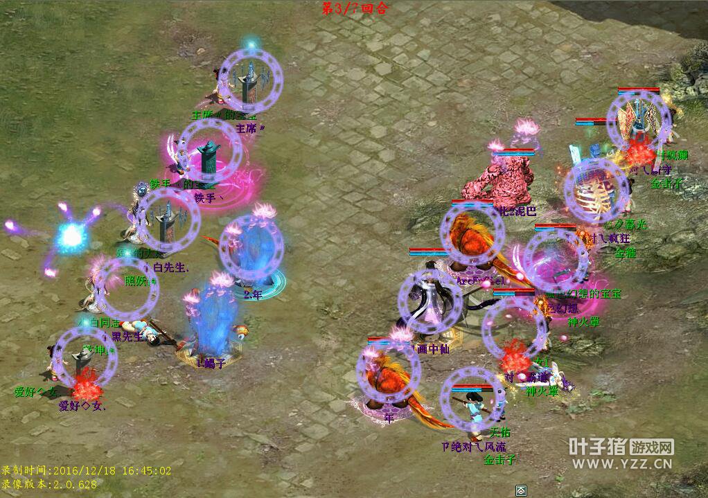早有消息先生队伍已经物资合并升级,我们也看到了熟悉的新男魔——铁手。首回合先生队伍破掉化无成功上速,随后给霄汉炮打上隐身,以确保该回合顺利出手。在速度上副视角或许更胜一筹。