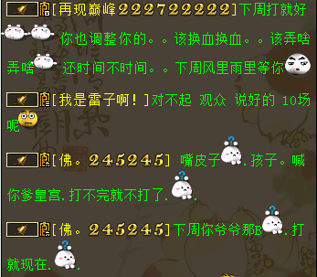 大家如果看多了高端玩家PK录像,下面奉献一波开服3个星期的新服幽兰谷皇宫对战,据说这个区好几个服务器的大佬都入住发展,例如谁与争锋? 昨晚是由铃铛口水仗开始,双方级别在区内都很高,平均为3转150+?先互刷铃铛数数字。 截取一张铃铛对刷图