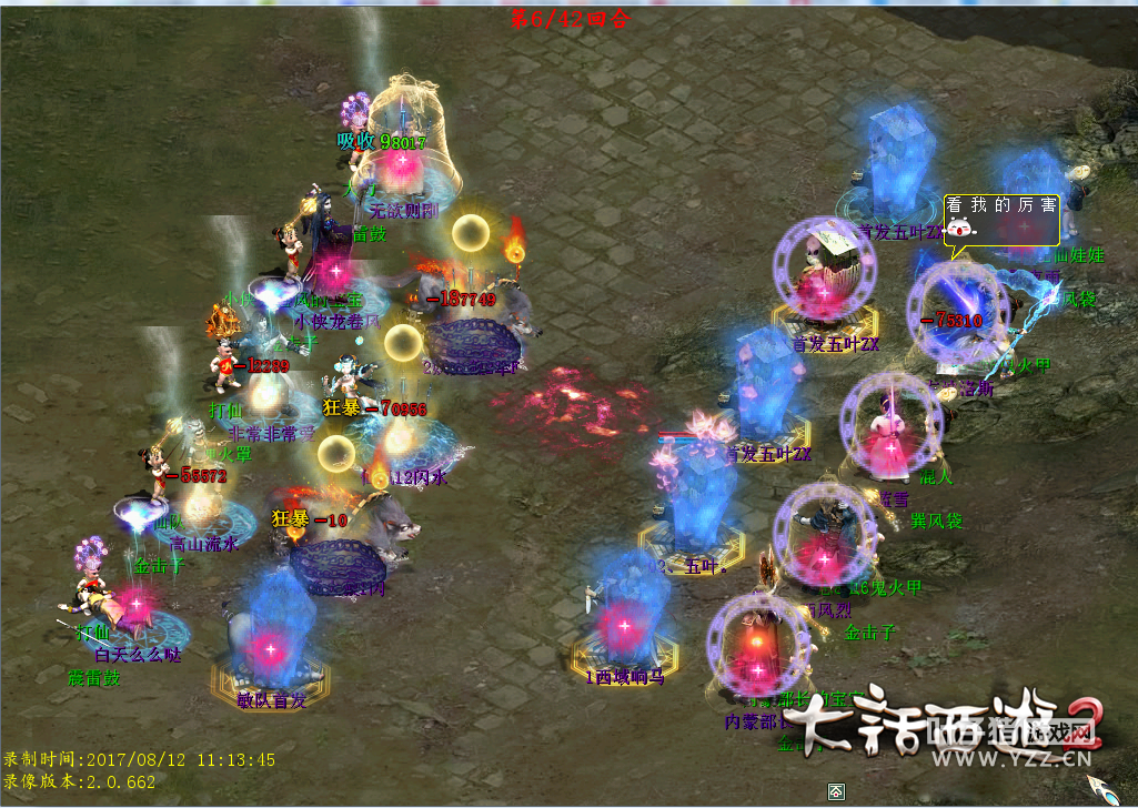 第六回合副视角男人继续大冰,主视角男鬼遗忘,男魔提速,仙族五叶反拉自己雷法秒出来,男仙用的棍子打的雷法不清楚是神兵还是16武器。 第七回合开始副视角男人寒鸦男鬼复活符文生效,看来是真的以为主视角是敏队了。 第十回合男魔给自己的火力仙上男魔天赋一苇渡江,火力仙强势开大,但是被女魔的定力当康打断。 第十五回合副视角所有单位全部被控制。 |