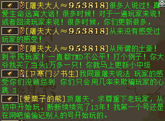 叶子猪大话西游2特色栏目一周大事回顾:盘点上周大事 梳理核心要闻 挖掘民间观点 点评事件本质 又到一周回顾的时间,大家好我是小贝,时光来到2015年12月的第一周,本周又发生了哪些大事和有趣的事?精彩内容切莫错过,各位看官且斟茶安坐,待我一一为您道来: TOP10"铃铛吐槽发泄心情 却引来全区回忆时刻 原文链接:http://xy2.yzz.cn/story/gossip/201511/980811.shtml?1449077316 事件过程:深夜,正在万籁俱寂之时,一位玩家在铃铛频道吐槽最近的游戏心情,却不想引来全区共鸣,纷纷回忆起那些年的瞬间... 小贝点评:观点虽然过于激烈,但这却是大部分人的真实心声,还是改一改季羡林老先生的那句话:我爱大话西游,赞美它是爱,批评它,更是爱啊!希望官方多多听听玩家的心声,也希望这次的开发组面对面大会能推出更多为玩家着想的内容。 TOP9"谁将成为200级第一人 各大排行榜为您分析 原文链接:http://xy2.yzz.cn/video/201511/980744.shtml?1449077285 事件过程:玩家针对排行榜为大家做出分析,谁将成为200级的第一人,占据这历史性的时刻呢? 小贝点评:看似等级飙升,无限风光的背后,这些练功狂人帮上的玩家又付出了多少的汗水?想必有希望成为第一人的玩家,在更为临近终点的时候,会更加的努力搏命,不知这位玩家的视频预测可会正确? TOP8"天雷滚滚 戏说狐小妖不为人知的秘密 原文链接:http://xy2.yzz.cn/hot/201511/980568.shtml?1449077263 事件过程:狐小妖的不死成为不少血队火力的最爱,特别在有高脱+吉人的技能,造就了多场仅剩狐小妖而翻盘的战局,更有那些超贵的狐小妖展示! 小贝点评:这位玩家总结了狐小妖为何火爆起来的种种原因,整篇文风清新卖萌,狐妹子粉绝对值得一看! PS:下章中将为您带来关于合服和玩家吵闹的最新消息,一起来看看!