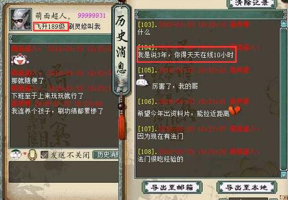 这位飞升189的大哥,你这样说话容易把新人吓到啊...练到这等级需要这么久么...