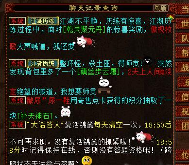 大家好,2018即将接近尾声,新一周囧图也在年终岁末继续为您带来欢笑,各位年快年快! >>>推荐阅读:一周囧图:一周囧图:石头蛋蛋也逃跑 化无龙马见笑 不管天气多冷,心情还是最重要的,比心心,笑起来! 本周有很多大事,大多和money和福利有关,比方说,藏宝阁提高上限,以后大家是不是可以见到百万级的账号和绝世道具了呢? 更为让大家惊喜的是,近日风靡的答题活动也进入了大话当中,涨姿势和涨钱包的两得福利,您是不是每一期都参加了? 昨日刚刚瓜分了一大笔,看来距离一个亿的小目标真的不远咯! 吃着火锅唱着歌,答着题赚着钱,咱们囧图乐事走起来! 人家300环,我也300环...怎么感觉不是同一款游戏?
