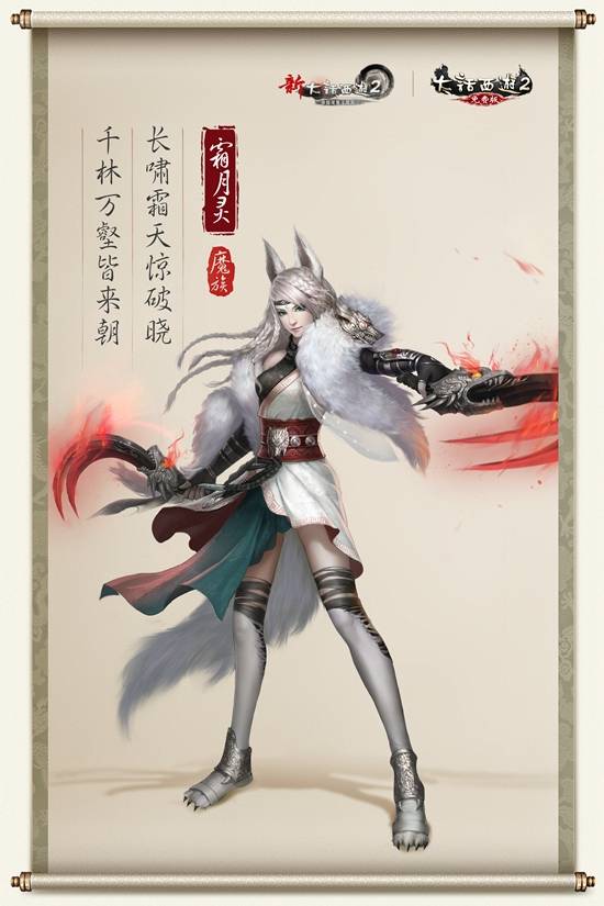 在接近一周的爆料中,我们陆续领略了全新鬼族、仙族、人族六位新主角的风采。今天,小编将向大家隆重推出最后两位新角色——魔族新主角:女魔“霜月灵”、男魔“绝影魔”! 长啸霜天惊破晓 全新女魔角色霜月灵 长啸霜天惊破晓,千林万壑皆来朝。 回首向来萧瑟处,冷月寒星影相吊。 新资料片《通玄妙境》全新女魔角色霜月灵 全新女魔角色“霜月灵”,她是狼王之女,降生于一个霜月如钩之夜,额头有一弯狼牙月一般的印记。机缘巧合之下,她甫一出生便为一名巫女所拾得。巫女驯养她长大,赋予了她温暖灵通的人性,却也在她身上下蛊,操纵着她的狼性去满足不可告人的欲望。终于有一日,蛊虫反噬,霜月灵咬死了巫女,却得到了她的模样——一个美丽明艳的少女,却有着一颗深不见底的心。 随后,霜月灵回到狼群中,携着与生俱来的凌厉狠决与巫师赋予她的诡秘阴冷,走向了狼群的顶峰。如今在每个月如狼牙的夜晚,这个孤独的狼王都会来到自己的降生之处,望月低吟,仿佛在向黑暗中的神祗诉说,忏悔,或是嘲弄。 超光越影步行空 全新男魔角色绝影魔 超光越影步行空,日月惊,风雷动。 尘沙有语,至今传孤勇。 独胆一骑破樊笼,乾坤外,绝尘踪。 新资料片《通玄妙境》全新男魔角色绝影魔 全新男魔角色“绝影魔”,他是俊朗不凡的大漠王子,会逢日月之蚀,却会化作神骏。其行也,超光越影,挟风奔雷,仙宫冥府顷刻而返。世人难见其影,只能望尘兴叹。 他曾为了母亲的遗愿,飞渡重山荒原,万里之遥一日至。也曾因心爱的女子,独闯千军重围,血海杀场独回还。终因自由故,冲破尘网樊笼,超逸乾坤之外,绝影尘寰之中。 到如今仍有人传说,在百里不见人的大漠里,在森森兀立的风蚀古堡间,有一个身影,像一道闪电,劈开遮天席地的风沙,呼啸而过。蛩音回荡在沙海里,激起无穷的声浪,一波波传唱着遥远的故事。 2016资料片《通玄妙境》夏季来袭 更多内容敬请期待 至此,2016全新资料片《通玄妙境》推出的人魔仙鬼四族八大全新角色已全部曝光,他们分别是:女鬼“镜花影”、男鬼“南冠客”、女仙“云中君”、男仙“青阳使”、女人“玲珑女”、男人“神秀生”、女魔“霜月灵”、男魔“绝影魔”! 不过,本次资料片还有更多精彩内容即将到来,让我们拭目以待。与歌同行,2016,期待不止于此! 新资料片《通玄妙境》2016夏季火热上线 <<<点击进入大话西游2论坛讨论>>> [编辑:米奈]