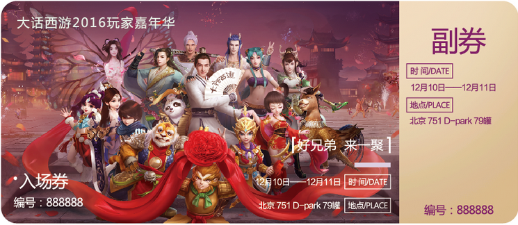 Q:嘉年华活动的时间是什么时候? A:2016年12月10日—2016年12月11日(每天10:00开场)Q:嘉年华的地址在哪里? A:北京市朝阳区酒仙桥路4号 北京798艺术区751D·PARK 79罐地图示意: Q:本次活动是否提供交通接送? A:本次嘉年华将为玩家提供望京南地铁站至场馆的接泊车服务Q:线下嘉年华如何入场? A:玩家可凭嘉年华邀请函进入活动现场,获得嘉年华邀请函途径如下: 1、参加三界嘉年华的活动有机会免费赢取线下嘉年华邀请函 2、11月11日起可以在游戏内购买嘉年华礼包(内含线下嘉年华邀请函)邀请函入场券如下(副券入场时回收): 嘉年华邀请函