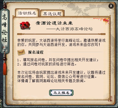 大话西游2煮酒论道话未来 玩家高峰论坛报名19日开启