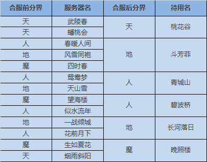 为了改善服务器的游戏环境,提高服务器人气,让玩家体验到更多互动和快乐,我们将在2018年9月27日开启2018年第3次合服! 为配合本次合并服务器,现根据合服工作需要及游戏实际情况,对废弃id进行清理。具体规则请见: 本次参与合并服务器名单如下: 合服后服务器名字说明:本次合服服务器名将由玩家投票产生,投票时间为9月20日维护后~9月24日中午12点期间,届时欢迎大家前往班宏(长安城215,133)处投票。 说明:受合并服务器数量,在线人数,合并原则等因素限制,对于本次没有合到的一些服务器,我们将在下次合服中予以考虑。 有时候合服分组以及最后是否合服会根据大家的要求进行相应的调整,最终合服结果以游戏实际为准。 特别说明: 1、本次合服后,本次合服相关服务器拥有免费改名机会的玩家需要在一个月之内完成改名,超过一个月则会失去免费改名的机会。 2、本次合服的投票要求:角色等级>=1转15级 3、本次合服投票需要大家先投票选择是否同意合服,选择同意合服的玩家可以继续投票选择合服服务器名。从本次投票开始,对于部分老服务器,我们不再强制要求玩家必须投两个合服服务器名。 根据服务器玩家的投票结果决定该服是否进行合服(合服支持率达到65%才会合服)。 如果某个服务器合服支持率没有达到要求,则不会进行合服,同时我们会取消该服务器的合服资格。合服分组内其他支持合服的服务器正常进行合服,服务器名由这些服务器的玩家投票决定。 合服说明: 一、遵从《大话西游2》经典版移民情况、开服时间、网络连接方式等情况进行合并。 二、合服时间:预计2018年9月27日合并完毕。 三、服务器合并最终结果以游戏实际为准。 四、服务器列表 合服后,将产生合服后的服务器列表。在合服后一段时间内,为照顾到玩家的习惯,玩家可以选择从原服务器列表登录,但从原服务器登录后将进入的是新服务器,也希望大家能尽快地适应新服务器的环境及登录方式并与新的朋友们一起畅快于游戏世界。(旧的服务器列表将在1个月之后删除。) 五、服务器合并之后,水陆大会积分不清零,但需重新报名比赛。在合服之后,根据合服前积分和剩余比赛场次的积分总和进行排名。 六、合并服务器之后,合区服务器的地宫积分排序将交叉排序。比如,A区和B区合区,A区某物品排名第一的玩家和B区相同物品排名第一的玩家,在合区之后,这两位玩家排队顺序则是第一和第二。同理,之前同是排名第二的玩家,在合区之后排队顺序会变为第三,第四。其它排队顺序可按照同理得到。如合并服务器方式为三合一,则三个服务器之间进行交叉排序。 七、合并服务器之后,帮派大战将全部重置,合并服务器的帮战需要全部重新报名,甲乙丙丁戊己庚辛级别的帮战,均由玩家报名产生,次周则恢复正常的帮战升降级。温馨提示:请在周五12点之前向长安帮派大战组织人报名参加帮战。 八、合并服务器之后,帮派之间的结盟关系将被取消,合并服务器的帮派需要重新与其他帮派进行结盟。 九、雁塔除妖碎片合服处理规则: 合并服务器后,玩家身上的符咒碎片数量不受影响;灵兽仙处可兑换的符咒数量取合并服务器中数量最少的。例如A、B服务器合并,A服务器灵兽仙处剩余1个中级符咒,B服务器灵兽仙处剩余2个中级符咒,那么合服后新的服务器灵兽仙处剩余的中级符咒数量为1,也就是说此服务器中只要任意玩家兑换中级符咒成功,那么全服所有玩家中级符咒碎片会被全部回收。 十、合服后15天内,所有玩家的社区数据都会保留:坊间不变,但街道会从101街起进行随机排列。同一坊间的任意玩家都可以找长安的超级管家(161,128)将自己的街道排名往前排。 如果玩家在15天内未自行选择,则系统会为这些街道进行排名,已经自行选择排名的街道不会受到影响。 十一、移民锁合服处理规则: 1,A服+B服=C服,从A服转到B服带有移民锁的,则合服到C服之后移民锁视为再回到A服,可予以解除。 2,A服+B服=C服,从A服转到D服带有移民锁的,则合服到C服之后 如果移回C服则移民锁解除。 3,上面两条规则只对最近一次合服有效。 合服玩家昵称说明: 合并服务器之后,可能会有一些玩家的昵称与其它玩家相同。为此,我们会为这些玩家提供一个修改昵称的机会。在玩家自己改名之前,为了避免产生数据冲突以及其它问题,系统将预先对这些昵称重复的玩家进行名字修正。所有名字被系统修正的玩家,都可以在合服工作全部完成之后,到皇宫(140,37)处找班宏免费将其重新修改为自己喜欢的名字,改名机会只有一次,希望大家留意。 特别提示:本次合服后,所有服务器拥有免费改名机会的玩家需要在一个月之内完成改名,超过一个月则会失去免费改名的机会。 系统对合服后出现重复的玩家昵称统一修正为“原服务器名+原玩家昵称 ”,相应玩家可去找“班宏”重新改名。 例如: 原服务器名=水帘洞 原玩家昵称=再爱一次 新玩家昵称=水帘洞@再爱一次 另外:如果本服务器合过2次以上,重名的玩家名字则根据合服次数改为:服务器(合服次数)@玩家昵称。如果没有发生服务器名字重复,则同原规则。 例如: 第一次合服务器名=水帘洞 原玩家昵称=再爱一次 新玩家昵称=水帘洞@再爱一次 第二次合服务器名=水帘洞 原玩家昵称=再爱一次 新玩家昵称=水帘洞1@再爱一次 合服帮派名字说明: 与玩家昵称一样,一些帮派名字也可能与