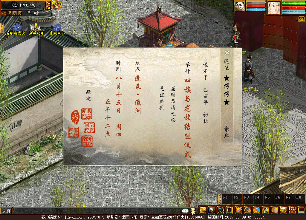 重要的事情说三遍!倒计时一天 龙族来了! 龙族来了! 龙族来了! 另外有几个大事提醒下!!!! 1、2019鎏金宝鉴龙兔可以激活了! 2、明天中午12:00,指海为盟,参与杀小怪活动有几率可得鎏金宝鉴和龙太子! 指海为盟活动详细地址:http://xy2.163.com/2019/znq/zhwmzm.html?from=nav 3、此前参与龙族预约的老铁可以绑定抽奖了; 经典版 http://xy2.163.com/2019/lzcj/ 4、8月15日21点整,新区【龙吟东方】、【潜龙出海】可以抽鎏金宝鉴、五常神兽手办 5、8月15日当天在线签到有几率得龙太子 [编辑:叶子猪小秘书]