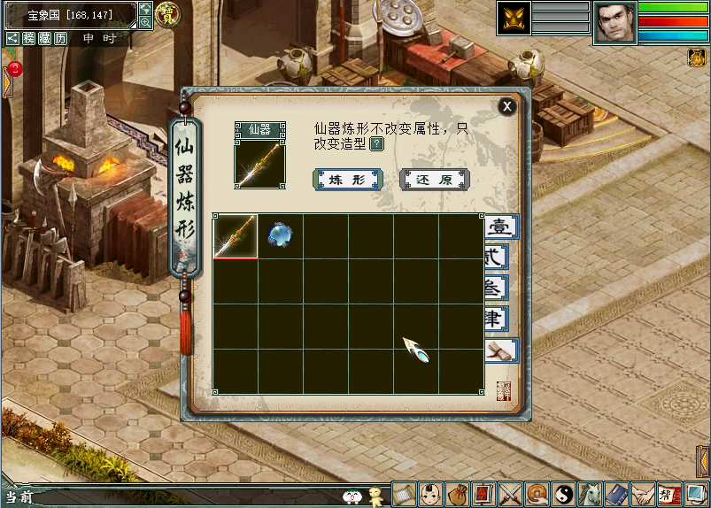 仙器系统中,每种仙器的造型各异、属性也都不同,这使得游戏内角色丰富多样。但这带来一个局限,造型和属性绑定导致玩家为了特定属性的仙器,不得不选择特定的角色。一个角色扮演游戏中,玩家不能选择自己心仪的角色,这违背了角色扮演的初衷。 因此,我们推出了仙器炼形功能——仙器炼形可以在不改变仙器武器属性的前提下,将仙器武器变成某种其他造型的仙器武器。 仙器炼形需要找宝象国武器店老板“谢木谢尔”(宝象国,164,152)。炼形时,根据仙器武器的阶数,需要消耗不同的炼形道具。炼形永久有效,炼形后仙器禁止交易,无法使用悔梦石、高级悔梦石重铸,无法给八荒遗风灌输灵气。炼化、开光、炼器等功能则不受限制。如果玩家不再想要炼形后仙器,可以找“谢木谢尔”还原炼形。还原炼形无消耗。 炼形武器的目标类型选取规则: 炼形后的武器类型遵循以下准则——如果该武器的可装备角色中,有和自己当前角色“同种族同性别”的,则可以将目标仙器武器炼形为自己当前角色可以装备的武器类型。 举个例子,4阶忽视混12的仙器剑“情殇”有以下角色可以装备:沧浪君、飞剑侠、骨精灵、红拂女、祭剑魂、剑侠客、镜花影、莫解语、南冠客、神秀生、玄剑娥、燕山雪、智圣仙、紫薇神、逍遥生。 其中,飞剑侠、剑侠客、神秀生、逍遥生是男人,红拂女、燕山雪是女人,骨精灵是女魔,智圣仙、紫薇神是男仙,玄剑娥是女仙,祭剑魂、南冠客是男鬼,镜花影是女鬼,沧浪君是男龙,莫解语是女龙。因此,所有的男人、女人、女魔、男仙、女仙、男鬼、女鬼、男龙、女龙角色都可以装备此属性的某种武器。玩家可以选择这些种族对应的武器类型。比如,猛壮士玩家,可以将此仙器炼形为斧头造型的4阶仙器“裂风”。 仙器炼形流程: 获得了4阶仙器“情殇” 猛壮士无法装备剑 多宝阁购买炼形道具 找NPC炼形仙器 选择需要炼形的仙器 选择想要炼形为何种武器造型 炼形成功 炼形后武器 [编辑:叶子猪小秘书]
