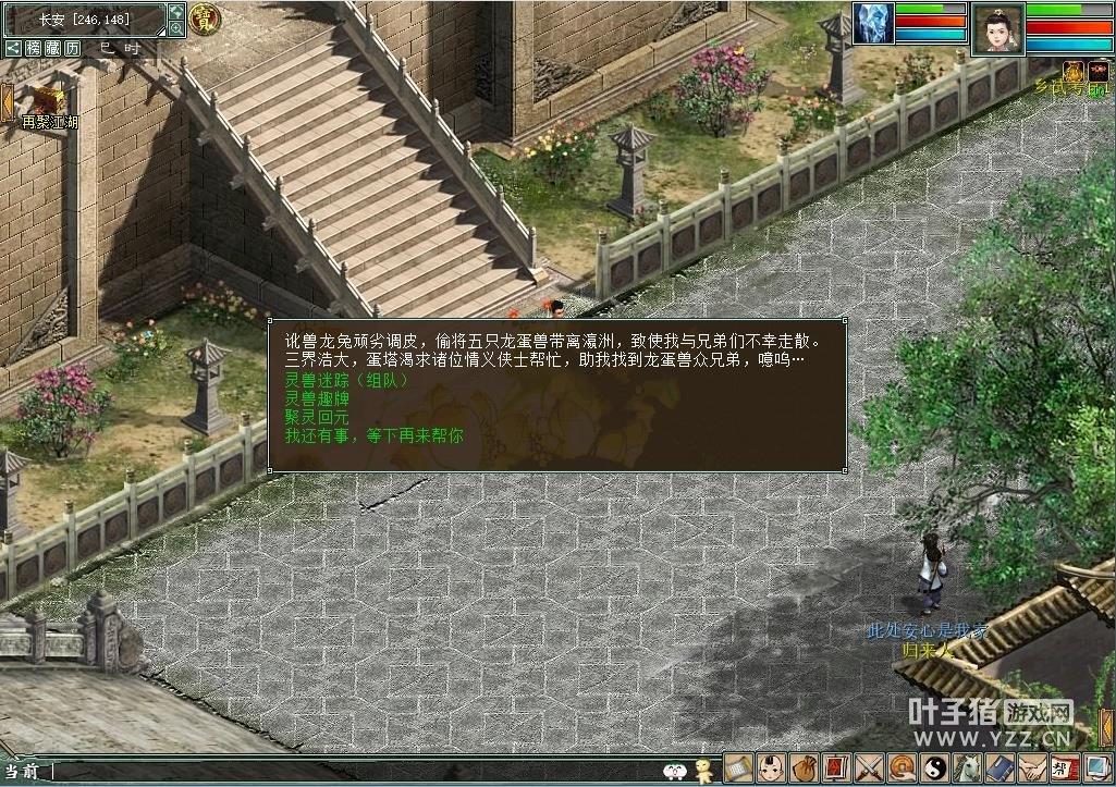 单人前往长安(245,148)找寻龙蛋兽蛋塔,选择灵兽趣牌。