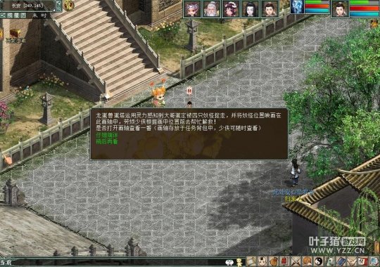 拥有奖励印章的玩家可以在蛋角处领取游历神州任务,按照任务指引前往目的地,使用任务道具栏中的游梦仙符,答题正确则可完成任务,获得大话币、补天神石等奖励。