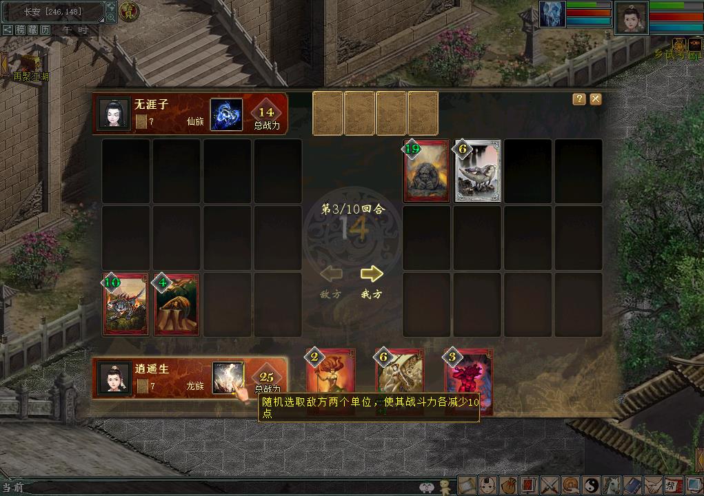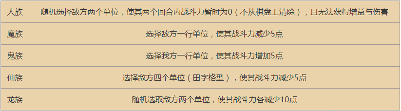 4.玩家每回合可以选择放置一张手牌于己方棋盘格上或使用种族技能,仅可操作一次。种族技能具有3回合的冷却时间。