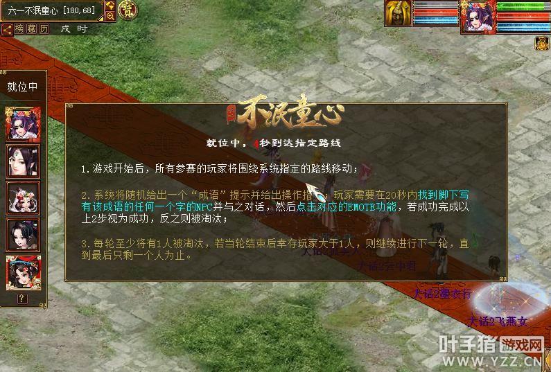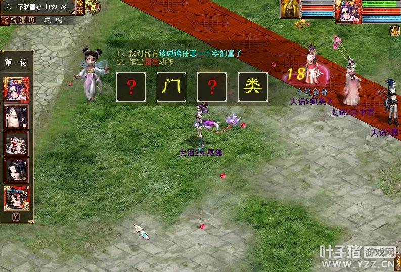 各位大话西游玩家们大家好,六一儿童节就要到了,首先祝所有大朋友小朋友节日快乐,让我们忘却成人的烦恼,重归年少时,再享逍遥快乐的童年生活!此外在儿童节大话为大家带来三款有趣的活动,让大家化身年少模样在这个节日里重拾儿时乐趣。此次六一期间多宝阁还将上架六一专属座驾“金玉太子”及亲子系列“知鱼”时装。 6月1日至6月2日,每天8:00-24:00,参加任务就有机会获得海量经验、物品奖励,神兵、一阶仙器、终极技能修炼丹、神兵石正在向你招手!来一起做回无忧无虑的你吧,下面让我们来看看具体内容。 告别烦恼 童年心无所惧 每个孩子长大成人的过程,都是孩子与父母联手取经打怪的历程。快快与好友组队,去找时光老人,选择自己想体验的角色,赶走你的烦恼吧! 玩家可组队到蓬莱找时光老人,选择适合自己的难度,低级难度“小朋友的烦恼”或者是高级难度“大人的烦恼”,根据任务栏的指引,在他们出没的地点找到他们进行挑战。 每天早上8点,六一活动开始 低级难度怪物“小朋友的烦恼”会出现在流洲、大唐境内以及东海渔村等场景。悄悄告诉大家,选择低级难度还可以变身可爱的宝宝造型哦! 挑战低级难度怪物“小朋友的烦恼” 高级难度“大人的烦恼”会出现在女儿国、平顶山、火云戈壁,同时需要以大人的形态进行挑战,大家要注意哦! 挑战高级难度怪物“大人的烦恼” 任务前15次可获得双倍经验、物品、糖纸,16-30次为单倍经验、糖纸。糖纸可找游园会杂货商兑换物品。 ? 不泯童心 童真一直都在 听说有童心的人永远都不会老呢,确认过你的眼神,你就是那个永远拥有童心的人,快去长安找爱玩的小孩,加入我们的游戏吧! 6月1日至6月2日每晚18:00至24:00符合条件的玩家可以找到爱玩的小孩(长安城313,180)报名参与玩法。 找到NPC爱玩的小孩点击进入游戏 凑齐5个人即可进行游戏。这个玩法其实很简单,凑齐5个人后,大家会在系统的安排下在红色的路线上走动,系统会随机停止走动,大话精灵开始出题,大家需要猜出这个成语,并在20秒以内走到这个成语的任何一个NPC附近,点击该NPC,然后根据提示点击打坐或困觉功能。 不泯童心游戏规则 大话精灵出题,地图会有红色小图标指引,帮助你分清楚童子所在方向。 找到脚下写有改成语字的童子,点击,并作出相应动作 每次操作的时间只有20秒,正确答案永远比参与人数少1,所以每轮至少淘汰1人。所以大家动作一定要快,猜成语一定要准噢! ? 玩捉迷藏 躲猫猫最有趣 捉迷藏都玩过吧?今年咱们也来重温童年时候的小游戏吧! 到宝象国找爱玩的孩子报名捉迷藏 凑齐五人即可开启捉迷藏玩法,进入游戏的玩家将被系统随机分配为寻人方或躲藏方。 躲藏开始后,躲藏方需要在45秒内走进庭院并找到你认为的安全地方,点击百变玉匣变换造型,变身后无法移动,快来挑一个你喜欢的造型吧! 躲藏方点击百变玉匣图标,选一个造型变身 寻人方在躲藏时间结束后,可走入庭院寻人。当你走到有人躲藏的附近时,系统会给出文字提示,如果你离躲藏者足够近,可以点击下方的寻人按钮或使用快捷键“ALT+2”,成功找出躲藏方后,可以获得相应的奖励。寻人方每找到一个人均可获得奖励,找到的人越多,奖励越多。当然,游戏结束时,如果躲藏方有大于等于1个玩家未被发现,则视为躲藏方胜利。 参与玩法可以获得糖纸奖励,糖纸可找游园会杂货商兑换物品哦! 快来大展身手,看看你更擅长躲起来不被发现,还是更擅长发现躲藏起来的小朋友呢? ? 专属座驾亲子时装限时上架 首款六一主题座驾,六一专属座驾“金玉太子”限时上架,6月8号8点前购买,有几率触发童心送礼,仅用10仙玉就可获得座驾“金玉太子”。 此外,亲子时装——知鱼系列也将在六一期间上架,活动期间还享有节日折扣优惠噢! 活动结束(6月2日23:59)前将会清空糖纸,清空时如玩家身上有糖纸,则直接将其兑换成经验,所以请一定要记得在活动结束前兑换完毕哦! 以上就是关于六一活动的全部内容介绍啦,6月1日至6月2日,大话西游的丰富活动陪你度过儿童节,让我们追寻无忧无虑童年记忆,感受六一活动妙趣横生吧。 [编辑:叶子猪小秘书]