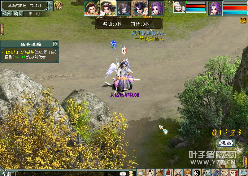 大话十八年一路相伴,盛世风华礼感谢有你!大话2经典版2020周年庆玩法“大话风华礼”即将火热来袭。周年庆玩法持续三周福利不断,每周都有不同内容,本周限时玩法“风华试炼”率先开启,揭开周年庆狂欢序幕,送上专属功绩功绩《健步如飞》,更有珍稀神兽、神兵、仙器等好礼等你来拿! 周年庆活动内容详解:http://xy2.yzz.cn/guide/activities/202007/1617029.shtml 风华试炼限时开启 揭开周年庆玩法序幕 2020周年庆玩法“大话风华礼”共计三周,每一周都有不同的新玩法和大家相见。8月6日10:00至8月9日23:59为第一周活动时间,组队竞速活动“风华试炼”限时开启,揭开周年庆玩法序幕! 紫阁连终南,青冥天倪色。大话十八载风雨兼程,盛世风华礼如期举行。三界中位列壬午到己亥十八仙班的值年神仙也闻讯赶来同贺,为了检查三界少侠对抵御妖仙扰乱风华礼的准备,在风华试炼场设置了试炼挑战。 风华试炼竞速挑战 每天排名送出好礼 活动期间,每天下午16:00-17:00以及19:00-20:00都将分别举行风华试炼,可通过长安城试炼传送人(252,211)进入风华试炼场。完成试炼挑战可以获得物品和经验奖励,队长有几率获得2次奖励,同时每天20点排行榜第一名到第三名的队伍成员将分别获得悔梦石、一阶仙器、补天神石奖励。各位少侠可重复参加刷新排行榜成绩,但奖励只获得一次,排行榜只记录少侠完成的最快时间。 比赛开始前15分钟开始入场,比赛开始后无法入场,少侠可组成五人队伍按时前往挑战。 风华试炼是考验大家协同配合的活动,比赛开始后队长需要依次带领队伍寻找13位风华试炼传送人,期间可能遭遇试炼使者考验、传送人问答以及神仙挑战。 触发传送人问答后每位队伍成员需要在20秒内完成作答,队伍中有一人答错则罚时10秒,多人答错累计惩罚时间。 活动期间有几率遇到神仙挑战,队长可选择是否接受挑战,若通过挑战则可获得3分钟奖励时间,所有惩罚时间和奖励时间,在最终完成时间计算。 当依次寻找到13位风华试炼传送人后即完成本次挑战。 风华排行榜将对当天2次活动的最快成绩进行排行,少侠可移步试炼传送人处查看,每晚20:00将对名列前三名的队伍成员进行奖励,奖品分别为:悔梦石、随机一阶仙器以及补天神石。 此外,以少于6分钟的最终成绩完成风华试炼将可以获得功绩《健步如飞》,兄弟们可要加油了! 大话周年礼“风华试炼”仅限一周,快叫上小伙伴组队刷新时间,赢取珍稀神兽、神兵、仙器等丰厚奖励吧!此外,完成“风华试炼”挑战,还有机会获得风华印记和仙迹线索奖励,用于在“庚子舞象录”中寻找仙人踪迹,有机会赢取2020鎏金宝鉴,以及穷奇手办、年手办、种族坐骑手办、鸡驴大公仔、大话麻将等超多精美实物周边奖励喔! [编辑:期许]