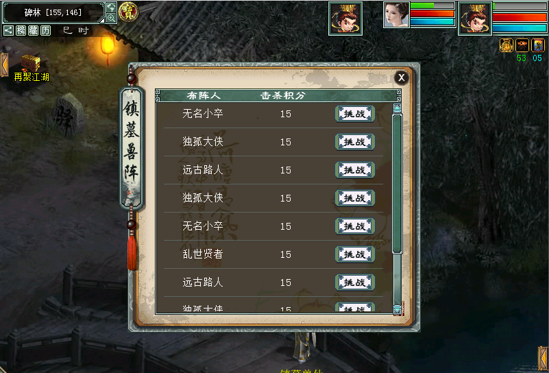 碑林追溯 挑战活动简介: 清明之际,祭祖拜宗。 世人纷纷来到碑林之中,追溯家史,缅怀先祖。 进入碑林,面对先祖之墓,需要通过镇墓兽阵的考验。 通过考验后,将获得凝聚了先人灵力的镇墓兽。 活动时间: 2019年4月5日00:00至4月7日23:59 参与条件: 等级大于等于30级,时间宠大于等于10级 活动流程组队通过碑林镇墓兽的考验。镇墓兽阵法变换莫测,每次挑战都可能为不同的阵法,你准备好了么? 通过碑林使者进入碑林。 通过碑林守护挑选先祖镇墓兽阵,接受他们的考验。镇墓兽阵各式各样,可以根据队伍水平选择适合自己难度的阵法。找到镇墓兽仙并接受他的考验,将开启单人玩法【镇墓兽阵】。 在副本中找到先祖雕像,瞻仰雕像可获得经验奖励。 挑战成功,可获得积分与经验奖励,积分可到碑林使者处兑换奖励。 |