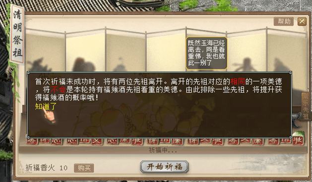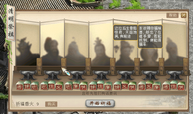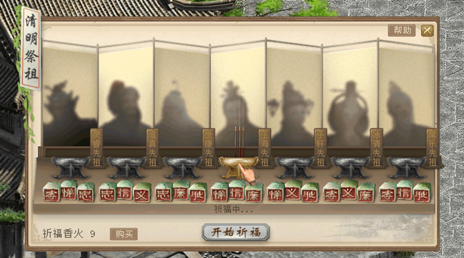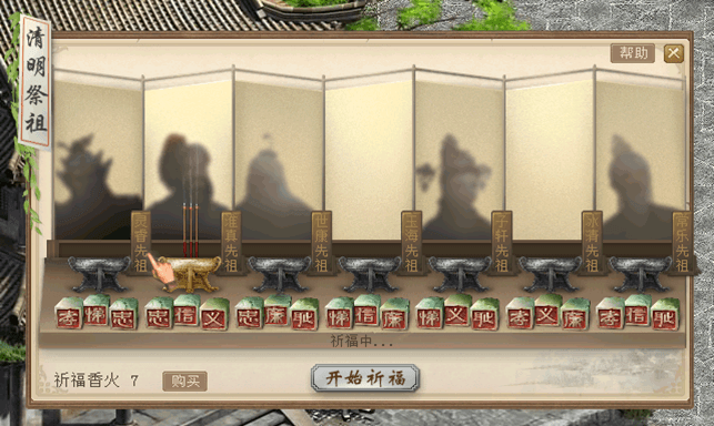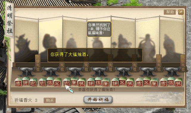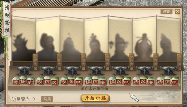 再次选择一位先祖,点击他身前的香炉进行祈福