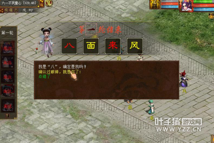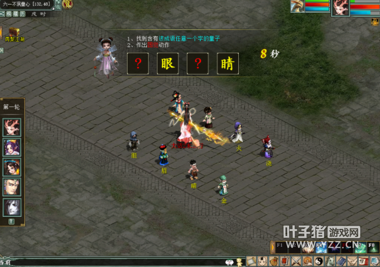 找到脚下写有改成语字的童子,点击,并作出相应动作 每次操作的时间只有20秒,正确答案永远比参与人数少1,所以每轮至少淘汰1人。所以大家动作一定要快,猜成语一定要准噢! 活动奖励: 六一期间,参加所有任务都可获得糖纸,获得糖纸的玩家可到宝象国找到游园会杂货兑换商(宝象国63,154)兑换各种自己想要的奖励! 可兑换物品包括孝经、帮派成就册、随机物品奖励等等。