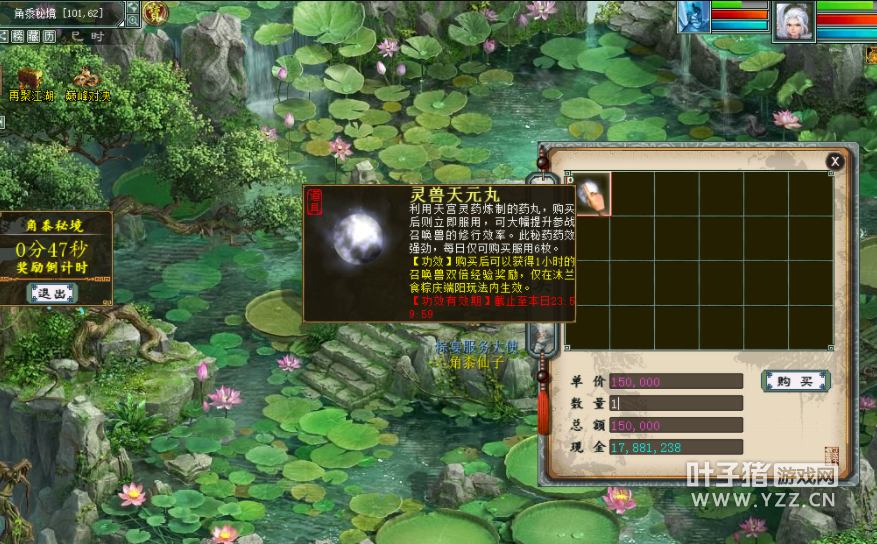 灵兽天元丸的效果将于每日24点清除(无法跨天保留),还请各位少侠合理购买自己所需的数量。