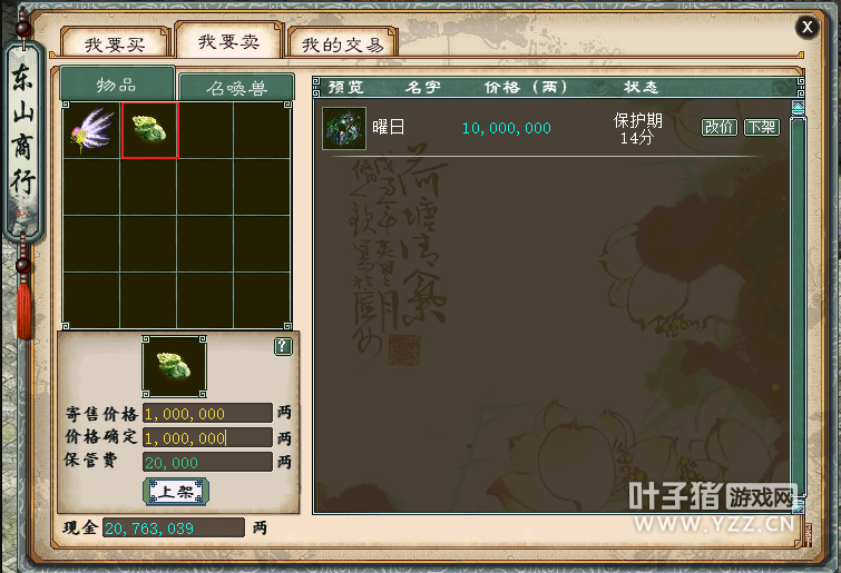 7、商品成功出售后银两将保存在商行,15天内可取出;超过15天未取出则自动放入保险箱中。