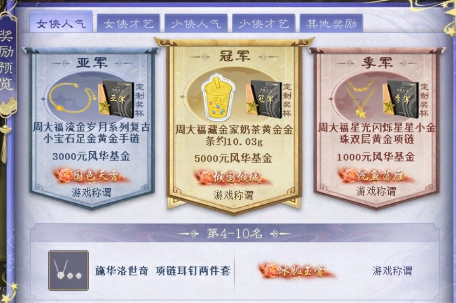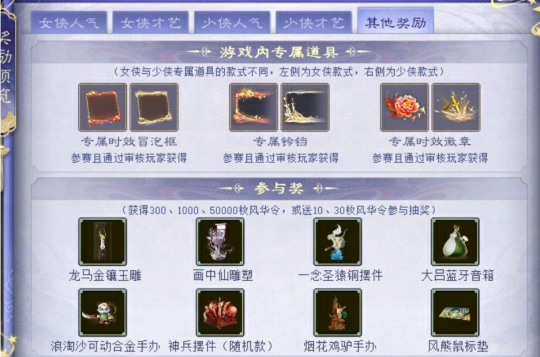 又到了每周例行维护时间,本周会有哪些精彩内容! PC版相关: 一、全服开放内容: 1.风华冠长安活动相关: 风华冠长安,才艺惊世人!大话风华冠长安-全民参与活动将于3月7日11点开启,活动简介: 1)报名参加 a)等级>=1转100级的少侠或女侠可点击左上角风华冠长安或打开活动专题页面,请您务必仔细阅读参赛规则,按照指引上传参赛作品待工作人员验证通过后即可成为选手; b)成为参赛选手后可免费领取专属铃铛、时效冒泡框和徽章,累计获赠300/1000/50000枚有概率获得龙马金镶玉雕、画中仙收藏级雕塑、一念圣猿铜摆件、大吕蓝牙音响、浪淘沙可动合金手办等实物好礼; c)参赛选手名次奖励: 专属定制称谓:人气和才艺全服前10名可获得定制称谓; 专属水晶奖杯:人气和才艺全服前3名可获得定制水晶奖杯; 风华基金激励:人气全服第1、2、3名分别可获得5000、3000、1000元现金奖励; 贵重实物:全服前10名还可获得如周大福藏金家/奶茶游戏黄金金条(约10g)、蛇年茅台&五常鎏金酒具礼盒、周大福复古小宝石足金黄金手链、华为MatePad Pro 12.6英寸平板、戴尔 13.3英寸笔记本等好礼(可登录游戏查看具体名次对应奖励);