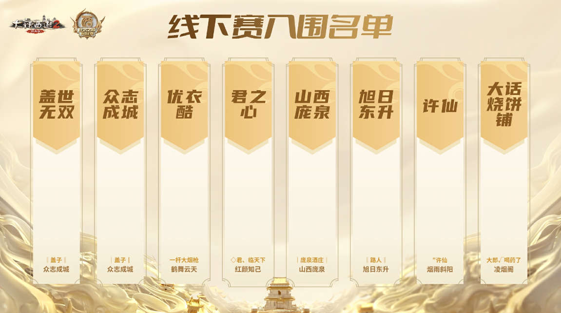 亲爱的玩家,大家好!!又到了每周的维护预览时间! 以下是本周维护内容: 1.赤子之心百炼成金,谦谦君子温润如玉!2025年大话西游2“比武之巅荣耀赛”线上赛阶段已正式落下帷幕,恭喜如下八支战队经历重重考验,最终会师上海,决战比武之巅!