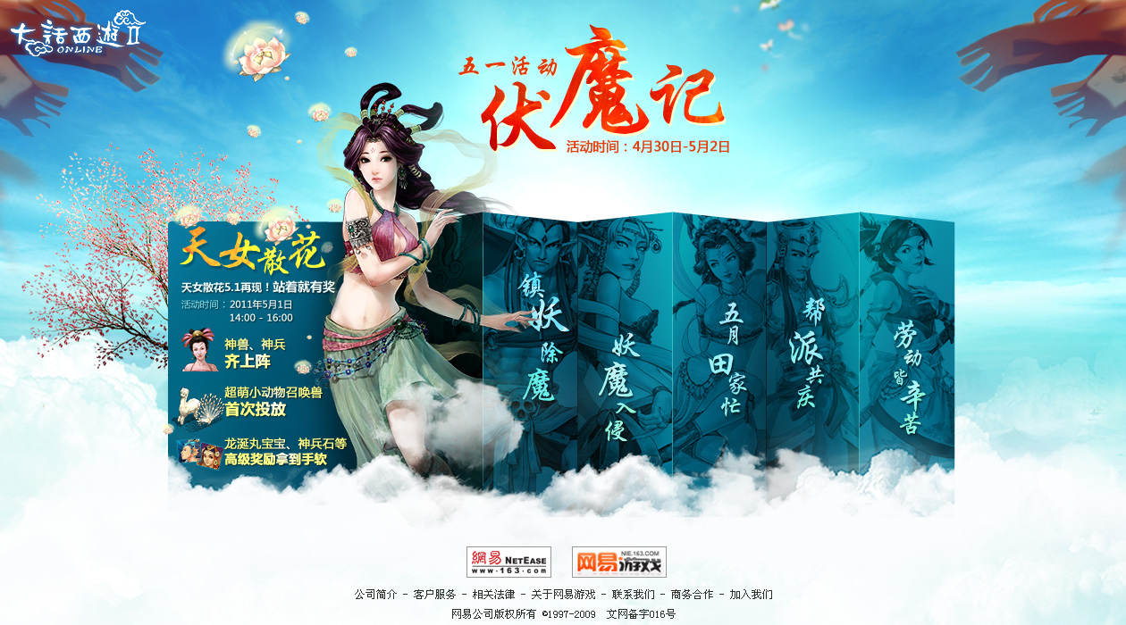 超精彩!新惊喜! 五一节即将来临,在这个充满欢乐的节日,大话2于4月30日零时零点开启2011年度的精彩五一活动,期待了一年的玩家们可以利用假期好好的爽一把! 历年的五一活动常让玩家们的假期过的非同一般,今年的五一活动还没有开始,已经让服务器内的气氛逐渐沸腾。还有不到24小时五一活动就正式开始了,想要知道内幕消息吗?想要知道今年的奖励是怎样给力吗?尽在五一活动专题: 大话2五一活动精彩 奖励丰厚