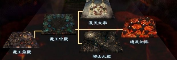 亮点三:宏大场景,巨型BOSS齐上阵 魔王窟挑战现时开放的包括魔王前殿、魔王中殿、混天大牢、移山大殿、通风幻阵五大迷宫,以奇险诡丽、宏伟壮观著称,魔王前殿的护炮之战,魔王中殿智破八门阵,移山大殿剑阵美轮美奂,混天大牢犹如漂浮在空中的幻境,通风幻阵的太虚古镜阵法,成为破坏弥猴王汲取地煞元气的重要途径。 魔王窟五大迷宫 由此可见魔王窟场景之恢弘博大。另外,BOSS也成为玩家争相挑战的聚焦点。牛魔王幻影,鹏魔王,狮驼王三兄弟,猕猴王。BOSS难度随之递增,还有普通与卓越两种难度供不同实力的队伍挑战。 传说中的巨型BOSS,隐藏在魔王窟最深处,超大的体型,超强悍的AI设计,让挑战它的玩家在视觉和团队协作方面有非同一般的感受。 |