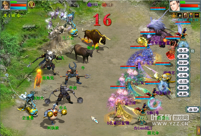 1.活动时间:2017年4月29日0:00-2017年5月1日23:59 2.活动流程: (1)寻找四位头目 3-5人组队,前往宝象国,大唐境内,傲来国,五指山,击败四位头目。 四位头目分别为银角大王、金角大王、九尾狐狸、独角兕。 (2)战斗胜利获得奖励: ①无击杀顺序要求,但是BOSS难度递增。 ②主怪难以被杀死,当他所有的手下都被杀死后,他会选择“逃跑”(视为打跑主怪)。此时玩家可以用五一任务道具紫金红葫芦“收伏”(收伏有一定几率失败)主怪(视为收伏主怪)。 ③每天第1次打败或是收伏某个BOSS可得经验和物品奖励。收伏主怪相比打跑主怪能获得更好的经验和物品奖励。 ④每个BOSS处每天“打跑”或是“收伏”的奖励只能获得其中一种。 ⑤一人收伏主怪,全队队员都可以获得更好的物品和经验奖励。 3.活动奖励: