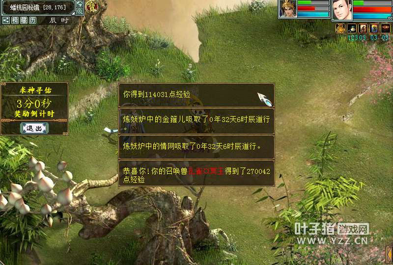 五、单人玩法:求神寻佑 1.任务时间:2017年4月29日0:00-2017年5月1日23:59 2.活动流程: 1.找老君丹童:单人前往长安(214,187),找老君丹童进入蟠桃园秘境。 2.进入蟠桃园秘境:蟠桃园秘境中,每三分钟,可获得一次经验;每天可获得120次经验。 3.获得经验奖励:每3分钟可获得1次经验奖励;每天最多可获得120次经验奖励。 <<<点击进入大话西游2论坛讨论>>> [编辑:wei]