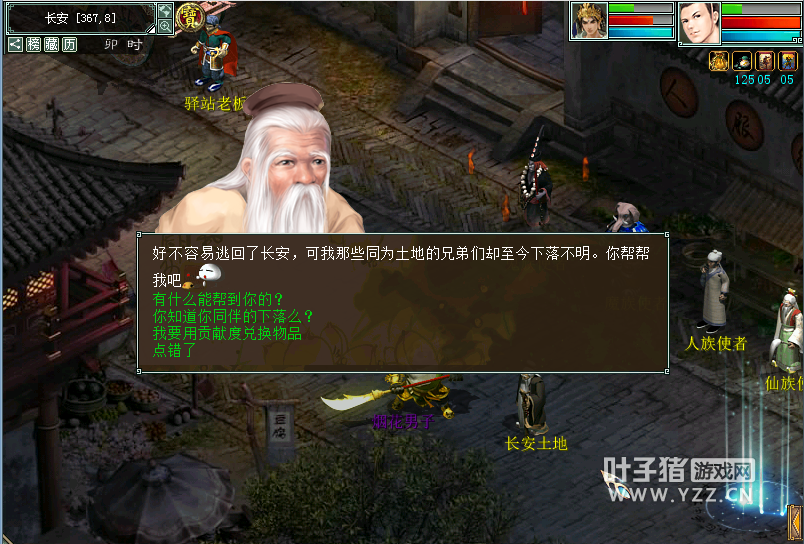 四、单人跑环:扶危济困 1.活动时间:2017年4月29日0:00-2017年5月1日23:59 2.活动流程: (1)领取任务:到长安(374,7)找到长安土地,可以帮助长安土地完成任务。 2.完成任务:从土地这里能得到其他土地的线索,进而可以找到其他土地所在之处。 在每个土地处都可以接任务。任务分2类:示威任务和寻物任务。 完成任务可以获得贡献奖励。在不同土地处完成任务相比在一个土地处完成任务可以获得更多贡献。 3.获得奖励:每人每天可完成15次。前8次可获得经验奖励贡献奖励,9-15次获得贡献奖励。贡献可以找长安土地兑换物品。