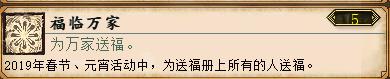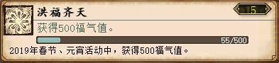 火树银花辞旧岁,腾龙舞狮迎新年!新春佳节即将到来之际,大话2春节任务福利新升级,今年春节,做任务还有功绩可以拿!春节期间,只要完成游戏内节日任务,就能拿到福临万家、洪福齐天、高山流水觅知音、争奇斗艳四种限定功绩,快来给你的功绩簿添上一笔吧! 新年福气满满 春节限定功绩等你拿 新年福气满满,猪年春节限定功绩共有四种,寓意着我们对大家在全新一年的美好祝福。新年福气当然是大家共享才更喜气洋洋,只要为送福册上所有的人送福,就可以获得“福临万家”功绩!攒福气过新年,在春节、元宵活动中,只要获得500福气值就能获得功绩“洪福齐天”! 新春音乐会和烟花汇演也等着大家一起来狂欢。参加一次新春音乐会并答对10道题,你将会被礼部侍郎引为知音,获得功绩“高山流水觅知音”!而在烟花汇演中,累积20次释放与唐王相同的烟火,就能获得“争奇斗艳”功绩! 以上四种功绩,都是今年春节特别推出的功绩福利,只能在2019年春节、元宵活动中获得哦,大家千万不要错过! 今年春节玩什么?当然不能错过猪年新春的特别功绩啦!春节任务轻松做,四大功绩惊喜拿!让大话为你的春节再添满满福气,一起踏入全新一年! [编辑:韦小贝]