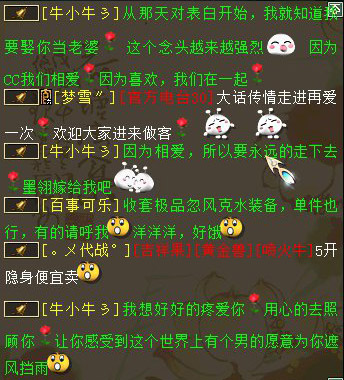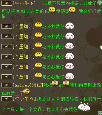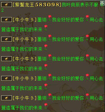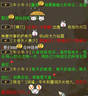 采访语录 浅秋儿 :你们好,我是记者浅秋儿,很高兴认识你们 墨翎。 :我也很开心认识你 牛小牛 :你好,很高兴认识你 浅秋儿 :看到牛小牛的深情表白瞬间被感动了,墨翎你有没有被感动到啊 墨翎。 :感动 浅秋儿 :能说说你们是怎么相识,相知,相恋的啊? 墨翎。 :我来这区第二个月认识的,后来经常在一起玩,慢慢就熟悉了。他说喜欢听我唱歌 牛小牛 :我是很偶然的一次认识的,很喜欢她唱歌。最喜欢她的笑声 浅秋儿 :你们是从游戏走到现实的吗?你有没有想过你们现实会走到一起 墨翎。 :想过,他说现实来娶我,我会一直等他的,因为每天的陪伴,习惯有你,牛小牛我爱你 牛小牛 :很想, 我比你爱我还爱你 墨翎。 :你要比我爱你更加的爱我,要宠我,包容我,我想干嘛就要让干嘛 浅秋儿 :你们一路走来,都遇到过哪些开心的事情呢,或许令你感动的事情 墨翎。 :开心的事情好多好多,也会经常吵的,有时候我玩的晚,他喊我早点休息,我不,他就跟我急 牛小牛 :我想你可以好好休息的,我想我的老婆每天都是美美哒 浅秋儿 :生过争执么,最后都是怎么解决的。牛小牛惹墨翎生气跪搓衣板么 墨翎。 :我还把他删除过,因为我们彼此深深的相爱着,才删除没有20分中,就因为不能没有对方,我又加他了 牛小牛 :嗯 那次你把我拉黑,我都气疯了,不停的打电话 浅秋儿 :说说是怎么一回事啊 牛小牛 :那次是因为睡觉的问题把,我一直想她早点睡觉,那天也许是情绪不对,都快2点了,还在玩,我语气就比较激动了说了她,她就生气了,然后就开始了争吵,然后她把我拉黑,然后我就疯了一样的换手机,换电话去给她打电话 墨翎。 :对的,我玩到几点哦,他就生气了,然后就闹,我感觉给管制,但是还是想如果不是因为在乎一个人,怎么会这样在乎你,太晚睡觉对身体也不好。他先下了,我还在玩,还很无视他打电话来催我早点下,删除他以后,感觉心里空落落的,特别特别的想他,整个晚上都睡不好,最好还是主动去认自己的错误。都约定好以后,说清楚了晚上1点之前必须睡觉,在加上以后才安稳的睡觉 牛小牛 :结果你有时候还是没有一点睡觉 浅秋儿 :然后怎么回事啊,为什么拉黑,后来是怎么和好的 墨翎。 :结果就是你妥协了,可以约定晚点睡觉,但是要两个一起,不能一个先下线,闹着闹着就啦黑了啊,拉黑以后心里好难过,一点也睡不着,心里好空荡,没有不会吵架的恋人,真的是这样吧,因为在乎,因为爱才会去计较细节 牛小牛 :因为当时比较凶了把,她就气了 浅秋儿 :最后又是怎么和好的呢? 牛小牛 :她不接我电话,不回我信息。我换了好几个电话都不接。正伤心的时候 忽然看见她接受我的好友了 墨翎。 :我要说,老公小气,爱吃醋,玩玩游戏聊天你也吃醋,最终还是理解他是因为爱我才会这样的,老公你知道我也是爱你的,很爱你, 我大大咧咧的性格喜欢玩而已,我的心里你是我爱的人,我爱你 牛小牛 :就是知道你大大咧咧的,所以才对你过问了好多 墨翎。 :是啊,他发了好的信息我都没有接受,我关机,机是关了,心里很不是滋味,还是开机了。在加上好友,聊好了,才安稳睡觉 牛小牛 :那天如果 你一直不搭理我的话 我很快就会出现了 浅秋儿 :你们是怎么从游戏走到现实的啊 牛小牛:因为在一起久了,我对她说我喜欢上你了,想见你一面,她考虑了好久好久 同意我去找她了,记得就是平安夜那天是吗? 墨翎。:我感觉他是个可以托付的人吧,重要的是他爱我,宠我,知道会照顾我,他说来我们这里过年,来见我的家里人,跟我父母提亲 浅秋儿 :听说你们准备现实结婚啊。是真的吗?牛小牛有没有现实求婚啊 牛小牛 :我怕别人抢走了你,不是我小气 是你太优秀了 没有娶到你 我心里的石头不落地 墨翎。 :我答应了今年过年让你来我们这里,见我的家人 浅秋儿 :前阵子看到你们在本区结婚也很轰动啊。能说说那天的场景吗 墨翎。 :那天结婚满仓促的,我就说随便就我们2个人吧,他说不,我要让大家都知道你是我的娘子,你是我牛小牛的女人 牛小牛 :我要适当的表达我的占有欲 浅秋儿 :牛小牛是我们区的吗,还是临时买的号,怎么才3转 牛小牛 :我两年多没有玩大话了,在烟雨楼台的话 移民的 墨翎。 :恩,他的占有欲是很高,高到如果跟别的人说话,他都生气的 浅秋儿 :好的,那最后你们还有什么想要说的话吗? 牛小牛 :玩网易游戏,是这辈子最重要的选择 墨翎。 :老公你要爱我多过我爱你,宠我,保护我,照顾我,娇惯我,总之我就是老大 牛小牛 :墨翎 等我脚踏七彩祥云 去迎娶你,以后你说跪鸡蛋皮,我绝对不会跪搓衣板的 下面是煽情的铃铛告白,我们的女主照片也将曝光!真的好羡慕呀! 铃铛告白 铃铛深情告白