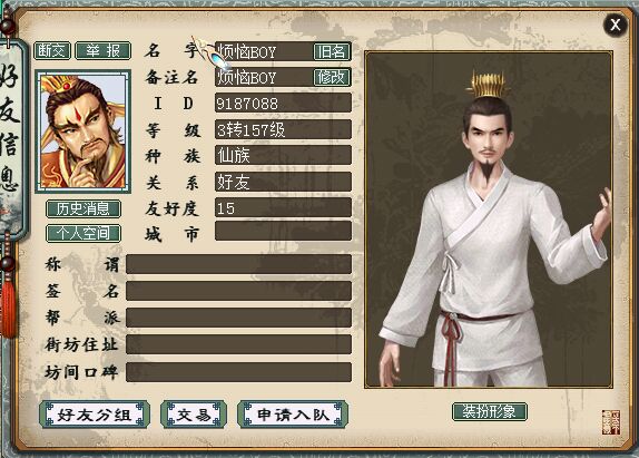 叶子猪米奈:看来你的记忆不错哦,游戏经历也很丰富。 Pan:这个是我所有发小儿之中玩得最好的,当时他可是神一般的存在~那时候不兴克啊,忽视啊,能强100多就很牛B了。他以前也经常跑200环,赚了不少网费#89 Pan:这个发小儿是最热心的,我刚玩的时候就是他帮我过所有的剧情1-3称。#17 别笑,那时候秒三大仙已经很牛B了,过了剧情3能带战神女娲也是很拉风的了#17其他的就不一一介绍了,现在想着重介绍一位至今下落不明的朋友,介绍这个朋友之前呢,先介绍我师父月光宝贝,他好像移民了还是怎么滴,我现在好友栏里见不到他。当时,我有个结拜的姐姐,就是时至今日我一直在找的人。 叶子猪米奈:为什么想找她? Pan:那时候,她101级,我是一转98吧,反正不到100.她被一个3转150+的男仙偷袭了,问偷袭原因,是因为那个男仙心情不好,吃了杀人香就乱杀人,我那位结拜姐姐不幸躺枪。我一听,立即火冒三丈,光天化日,朗朗乾坤,明目张胆,肆无忌惮,那还得了?所以我和我姐姐俩人就组队,吃杀人香,一起点他。可想而知,还不够人家一炮。可我不服啊,就这么死了点,点了死,那主儿都烦了,说算他错了让我们别来了。我说你世界上给我姐姐道歉,他还真道歉。可能是不打不相识吧,居然成了我师父 叶子猪米奈:佩服佩服,你们不怕死的毅力把你师傅给击败了。 Pan:哈哈,那时候是不服吧。因为他秒不死我,是他的宠物砍死我的。那时候升级是很艰辛的,结拜姐姐升了几级后就不怎么玩了。跟我告别的时候我们一起在修罗古城待了一个晚上,过后她给我留了个QQ,我在网吧上的,下线后什么都找不到了,我的游戏世界里就少了这么一位好朋友,好姐姐了。总结起来,那时候虽然没钱,玩得却是穷开心。升级节奏没那么快,没有挂机这玩意儿,所以整个升级过程培养出来的感情是现在没有的。现在升级日常任务,图的就是快,方便。人们组上队伍了就是挂机看电影或者干活儿去了,哪有过程去培养感情。所以啊,我现在没事的时候都会上这个紫金山的号,喊喊世界:玉面玲珑帮派有人在吗?帮我打听个人好吗?以前认识我的人还在吗?还玩儿吗?看到了联系我好吗? 叶子猪米奈:那有人联系你吗? Pan:难过的是,没人加我,即使加我的也是和我一起感慨的。其实我是想通过我姐姐的帮派成员来看看我姐姐的下线时间,因为我也想知道我姐姐自打下线后还有没有上线过,是不是也像我这样,偶尔上来看看以前的朋友。其实我最想说的,并非是久违重逢的问候,而想说,姐姐,我现在有能力把号整得更牛B了,没人能随意杀我们了。 叶子猪米奈:你这个找姐姐的让我想起前几天记者帮一个玩家的寻人启事,也是很多玩家留言,你看了吗? Pan:这个贴我看过,自己看了也是感慨万千。久违重逢,无非就是感慨当年,浅谈当今。