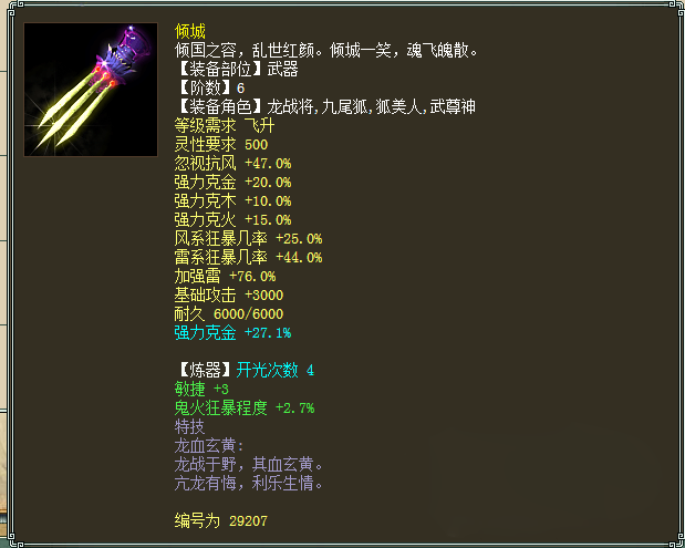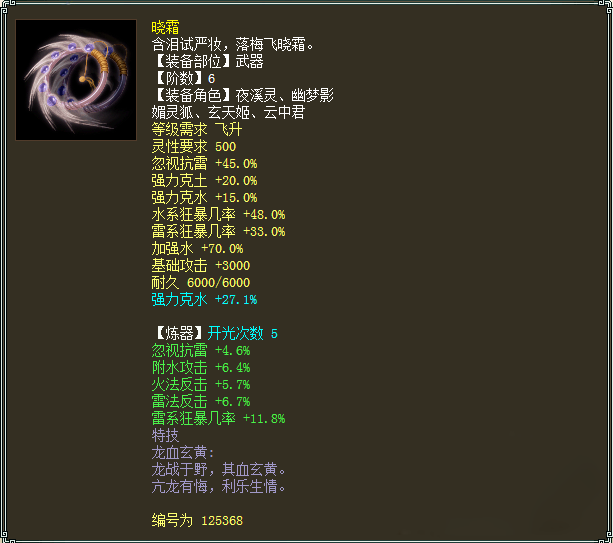 抛开火法,转移到大放光彩的雷法。 仙器之中,目前任何的雷法武器只有剑跟环。 剑只能在血队之中使用,而环则可以通用,敏队之中,雷木几乎只能选择环。 从这里,又可以看出对敏队的压制。 环的四阶只有水法,五阶以上才有雷法,从投资上先干了一批人。 再看克,五阶以及六阶都是土与水,没有一点的木,在克的方面,主力的木便先挨了一刀,虽然土以及水都是副克,但这些副克的收益要不大于主克的收益。 纵观全部仙器,敏队基本只有环选择,然而环又在克上面斩了一刀。 五阶剑是克木,但却没有忽视,在女魔都三抗仙法的情况下,血队还好,敏队不存在忽视的话,无法想象伤害。 转到男仙阵营,一把水爪子,一把风雷爪子,把女仙的脸打的啪啪啪的响。 两把武器,想玩什么法就玩什么法,继续甩出火法一条街。 在仙器上,火法还是输了。