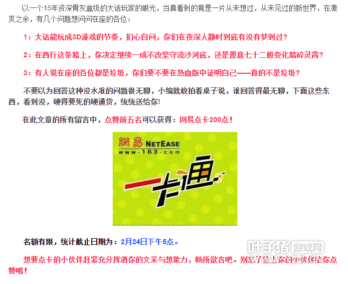 亲爱的小伙伴们,上周我们的微信公众号的留言活动赢来了很多小伙伴的赞!小编也是说到做到,必须发点卡啊!如果还没有关注我们微信公众号的小伙伴快扫扫上方头图的二维码,微信公众号后续会推出一系列福利。 本次踩楼活动标明点赞前5必发200点点卡哦(在微信公众号里留言),我们先看看相关内容。 >>>微信活动:坚持了15年的大话 这一次我们还能有机会脱非入欧? 活动说明
