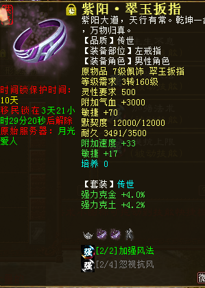 没错---这个被遗忘的套装就是太皓,目前都是寒鸦和容止,很少有用太皓的朋友,话不多说,直接进入正题: 优势1】BOSS伤害较高 [卓越塔七]第4回合+灵爆+狂暴: [月光穷奇] 第五回合+下雪+灵爆+狂暴: 【优势2】自身抗性较高 生生不息提抗10点,配合宝石提抗,配合护身符提抗,无任何增益站街单抗混可达160+ 【优势3】自身速度可高可低 日常站街1700+,进战斗1800+ 附上几张属性图: [生生不息] [月光穷奇属性] [编辑:宁财神]