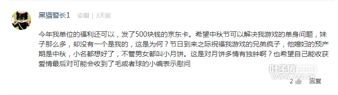 中秋假期结束小编正式上班,第一时间就是查看小伙伴们参与中秋福利活动的祝福留言,月饼充电宝以及游戏趣味抱枕将花落谁家呢? 以下公布获奖的小伙伴,请联系编辑QQ2862221671叶子猪米奈领取你们的节日奖励,礼物领取截止时间:2018.9.27 黑猫警长1领取月饼礼盒1 黑猫警长1:你家单位福利不错,不知你家兄弟疯子的小月饼是否已降生?就冲对月饼的执着,这盒月饼送你了. 六月领取游戏表情移动电源(幻响定制款)1个