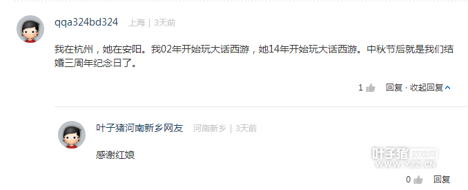qqa324bd324:这是一个有故事的老玩家,不知道你俩的爱情是否从网络走到现实的呢?祝福你们的结婚三周年。 如初见领取大话西游版抱枕1个
