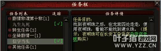 当你一出灵兽村,突然听到有两个人的对话,吸引了你的注意。快去找“赵大”了解他们说的事情。 原来他们在说一件稀世神兵,你对此也开始好奇,但是他们却说要避水珠交换,你只能前往龙宫找“东海龙王”要避水珠了。 龙王表示很乐意给你,不过需要使用“夜明珠”去海底寻找。你可以先去长安杂货店购买一个夜明珠。 |