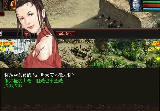 制服了“三十娘”后,趁机赶紧问问她关于孙悟空转世的事情。 原来帮主“至尊包”便是孙悟空转世,妖怪们都等着吃唐僧肉,都在斧头帮坐等唐僧路过。这次,连三十娘的师妹——其前身是“纯阴女妖白骨仙”——都来到了斧头帮,赶着吃唐僧肉。 我们先去找传说中白骨仙转世的“晶晶姑娘”,问问她是否还记得孙悟空。 带白晶晶回斧头帮见见帮主,迎面撞上了“二当家” |