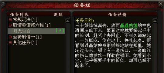 赶快到“大唐边境345.233”使用“月光宝盒”回去救“晶晶姑娘”。(月光宝盒在道具栏,打开后直接右键使用。) 月光照临,时光倒流,你与小宝又落在一个熟悉的场景,这次看到“三十娘”正在和“晶晶姑娘”(大唐边境370.255),说着什么,蹲在旁边偷听一下。 原来,三十娘说至尊小宝丢下晶晶姑娘跑了。出示了夜明珠,并说自己也进入过至尊小宝的梦境中,看过他的梦。还提到了“盘丝大仙”。 三十娘终于离去,却见“晶晶姑娘”(大唐边境370.255)神色灰暗,眼看她又举起手中的长剑。。。。。 |