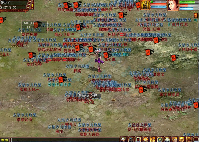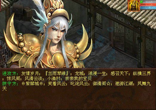 首先是阐明我的帮派及我所处的位置: 我的帮派是全服第六帮,感召天下,此次和友情岁月等帮派联盟为“攻方”。 初步分析为攻方称谓是第一个帮派+联盟二字;所以自然守方的称谓也是第一个帮派+联盟二字 大概的主题形式就是这样。 进场后