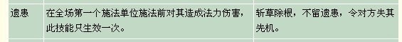 3,遗患/对全场第一回合第一个出手的单位造成一定的法术伤害。 这个技能可是说是惊天地气鬼神,有了这个技能,什么3100敏的大魔们全部玩蛋去,第一回合如果不能出手的话,那么超敏魔存在的意义就骤然减少95%以上! 但现在仍然有一个地方存在很大的疑问?此法术伤害的数值到底是多少呢?一个全敏加点的180级超敏魔被这样一个技能摧残之后,还能不能出盘?出速?看样子事实的真相我们只有在该技能开放的时候才能知道。不过,个人以为,如果想克制此技能的话,目前最好的办法就是在队伍中配置双敏魔,一个不能出手还有另外一个嘛!
