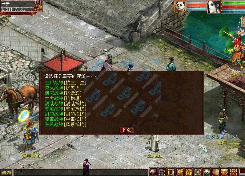 进入长安选择帮派抗性:(帮派守护满抗,主30副15)