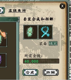 拆解时,只需放入已经合成的套装即可,但是拆解后,只返还原有的装备,玉符会消失。